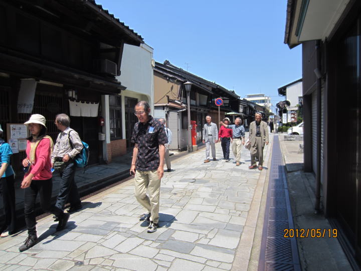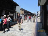 (千本格子<せんぼんごうし>の家並みと銅片の敷き込まれた石畳が美しい) |