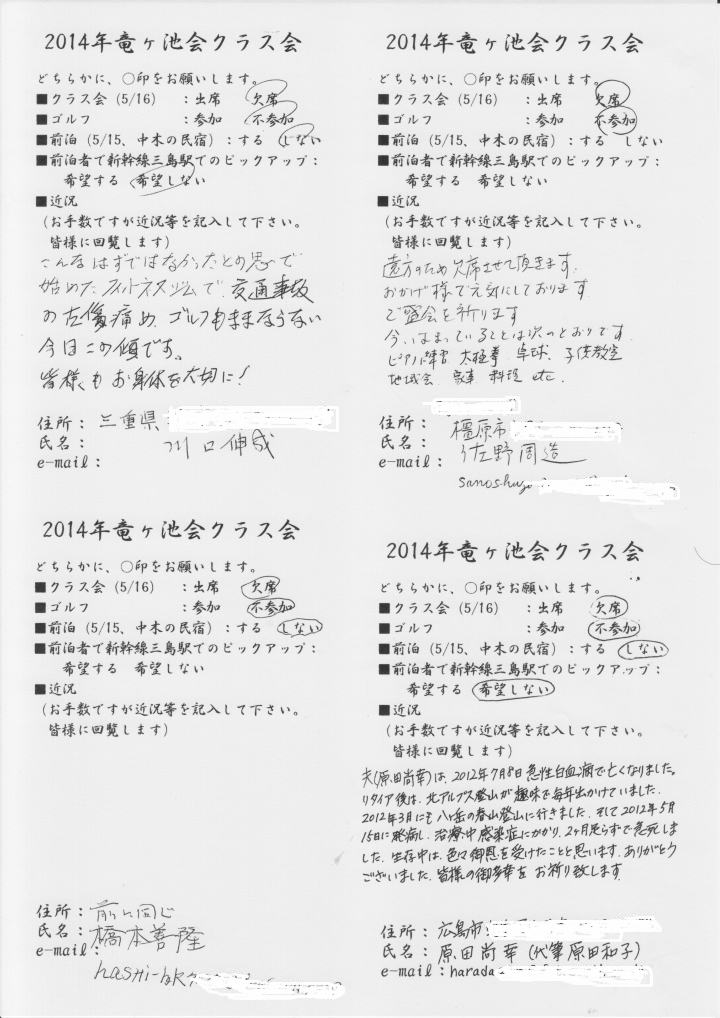 竜ケ池会クラス会の件 投稿者:遠藤 健 投稿日:2014/03/02(Sun) 22:07 [返信]
