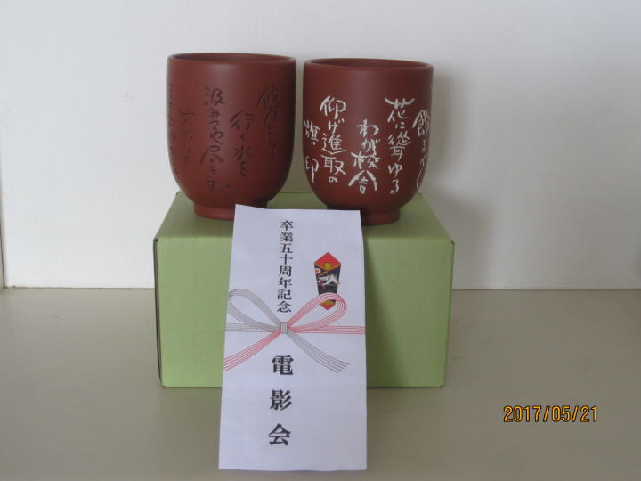 42年卒の電影会総会出席者各自が、記念品を頂きました。