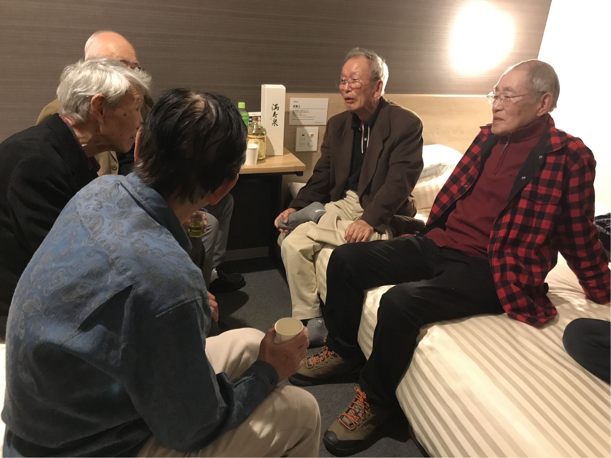 夕食後、ホテル富山射水での談笑(右側、一泊のみ参加の